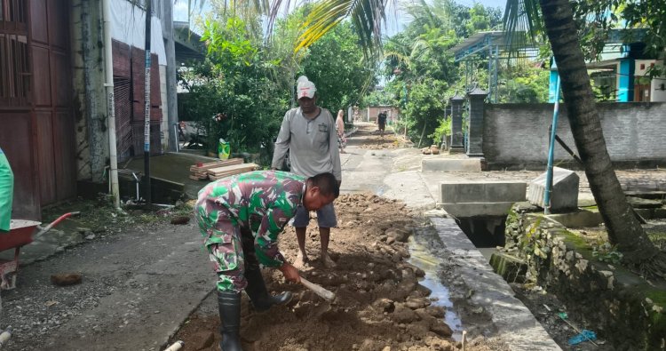 DEMAK - Babinsa Posramil Kebonagung Jajaran Kodim 0716/Demak Serka Mahfud melaksanakan Gotong Royong Bersama Masyarakat membangun jalan di Desa Mijen Kecamatan Kebonagung, Senin (02/02/2026).