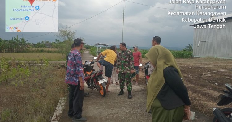 DEMAK - Dalam rangka mendukung program pemerintah pusat tentang penguatan ekonomi masyarakat melalui pendirian Koperasi Merah Putih di setiap desa, Danramil 13/ Karangawen Kodim 0716/Demak Kapten Kav Slamet Udoyo didampingi Bati Tuud Pelda Abdul Ghofur dan Babinsa Desa Tlogorejo Serda Hartono melaksanakan monitoring penyiapan lahan pembangunan gedung Koperasi Desa Merah Putih Desa Tlogorejo, Kecamatan Karangawen, Kabupaten Demak, Kamis (13/12025).