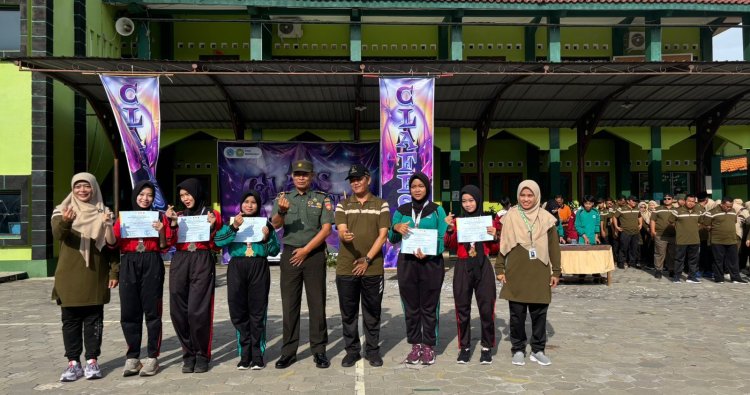 Demak – Komandan Kodim 0716/Demak diwakili Pasi Pers Kapten Inf Ahmad Zazuli memberikan arahan dalam apel pembukaan Class Meeting yang digelar MAN Demak, Senin (08/11/2025).
