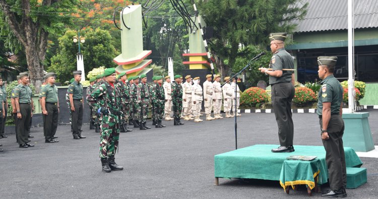 DEMAK - Komandan Kodim 0716/Demak Letkol Arm Dony Romansah, S.Sos., M.Han., memimpin langsung upacara bendera 17-an bulan November tahun 2025 di halaman Makodim, Jalan Kyai Singkil No. 1 Demak, Senin (17/11/2025).