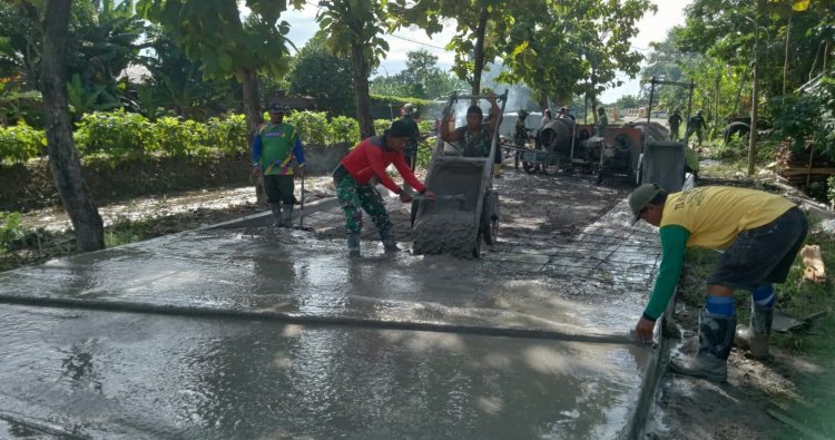 Di tengah suasana bulan suci Ramadhan, ibadah puasa tidak menyurutkan tekad dan semangat Tim Satgas TMMD bersama warga untuk menuntaskan pembangunan infrastruktur desa. Dengan penuh dedikasi, personel Satgas bahu-membahu melakukan pengecoran jalan.