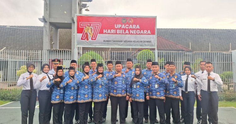 Jumat, 19 Desember 2025 — Rumah Tahanan Negara (Rutan) Kelas IIB Demak melaksanakan Upacara Hari Bela Negara ke–77 di lingkungan Rutan secara khidmat dan tertib. Kegiatan ini diikuti oleh seluruh pegawai dan warga binaan, yang menunjukkan tekad bersama untuk menumbuhkan semangat cinta tanah air serta meningkatkan kesadaran bela negara dalam berbagai aspek kehidupan. Peringatan ini juga menjadi momentum untuk memperkuat persatuan dan tanggung jawab dalam menjaga keutuhan bangsa.