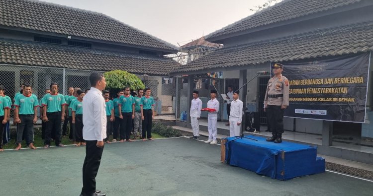 Demak, 20 Oktober 2025 – Rumah Tahanan Negara (Rutan) Kelas IIB Demak melaksanakan Apel Kesadaran Berbangsa dan Bernegara yang berlangsung di halaman Rutan, Senin, 20 Oktober. Kegiatan ini diikuti oleh seluruh jajaran petugas dan warga binaan pemasyarakatan (WBP) sebagai wujud nyata pembinaan mental dan karakter kebangsaan di lingkungan pemasyarakatan. Kapolsek Demak Kota, Iptu Rudi Tri Sayogo bertindak sebagai pembina apel, menekankan pentingnya semangat nasionalisme dan tanggung jawab bersama dalam menjaga persatuan serta kedisiplinan di dalam Rutan.